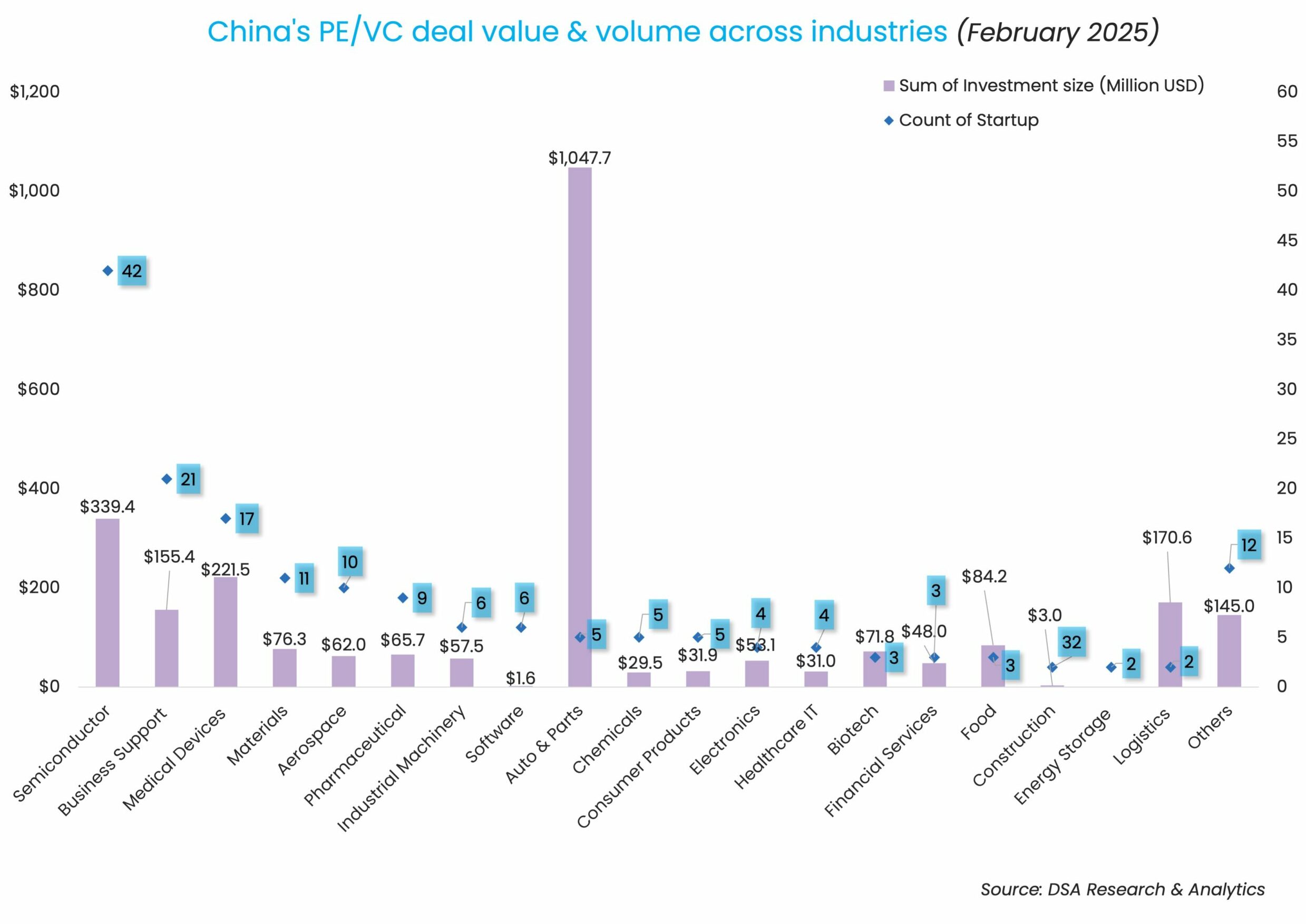 Semiconductors continued to lead in deal count, with the completion of 42 transactions. Automobiles & Parts, too, led the PE-VC activity by deal value. The Auto & Parts sector raised over $1 billion, despite the completion of only five deals.
