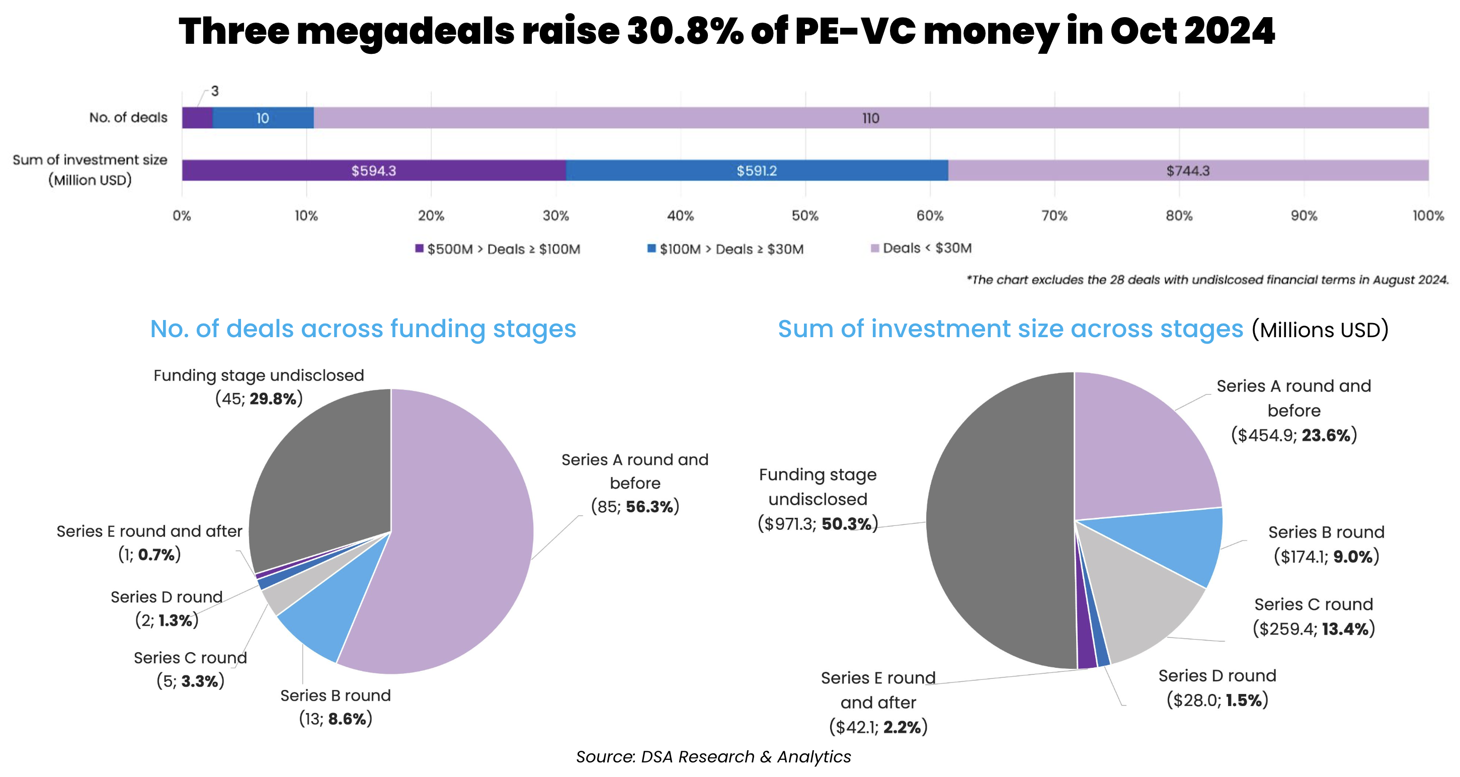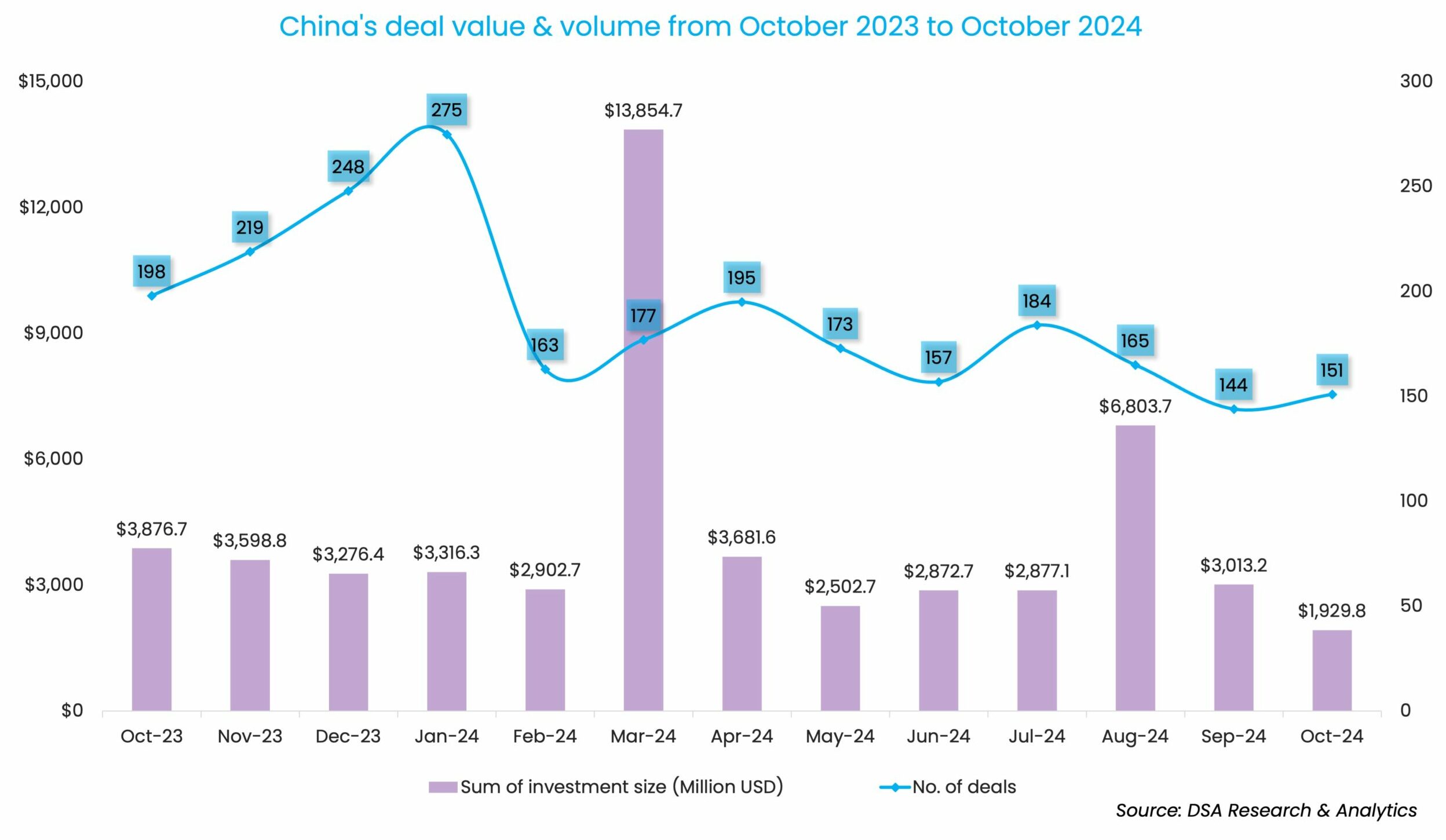 Megadeals, which typically dominate the funding scene in the Greater China market, were the hardest hit in October, when only three such transactions took place, accounting for 30.8% of the total deal value.