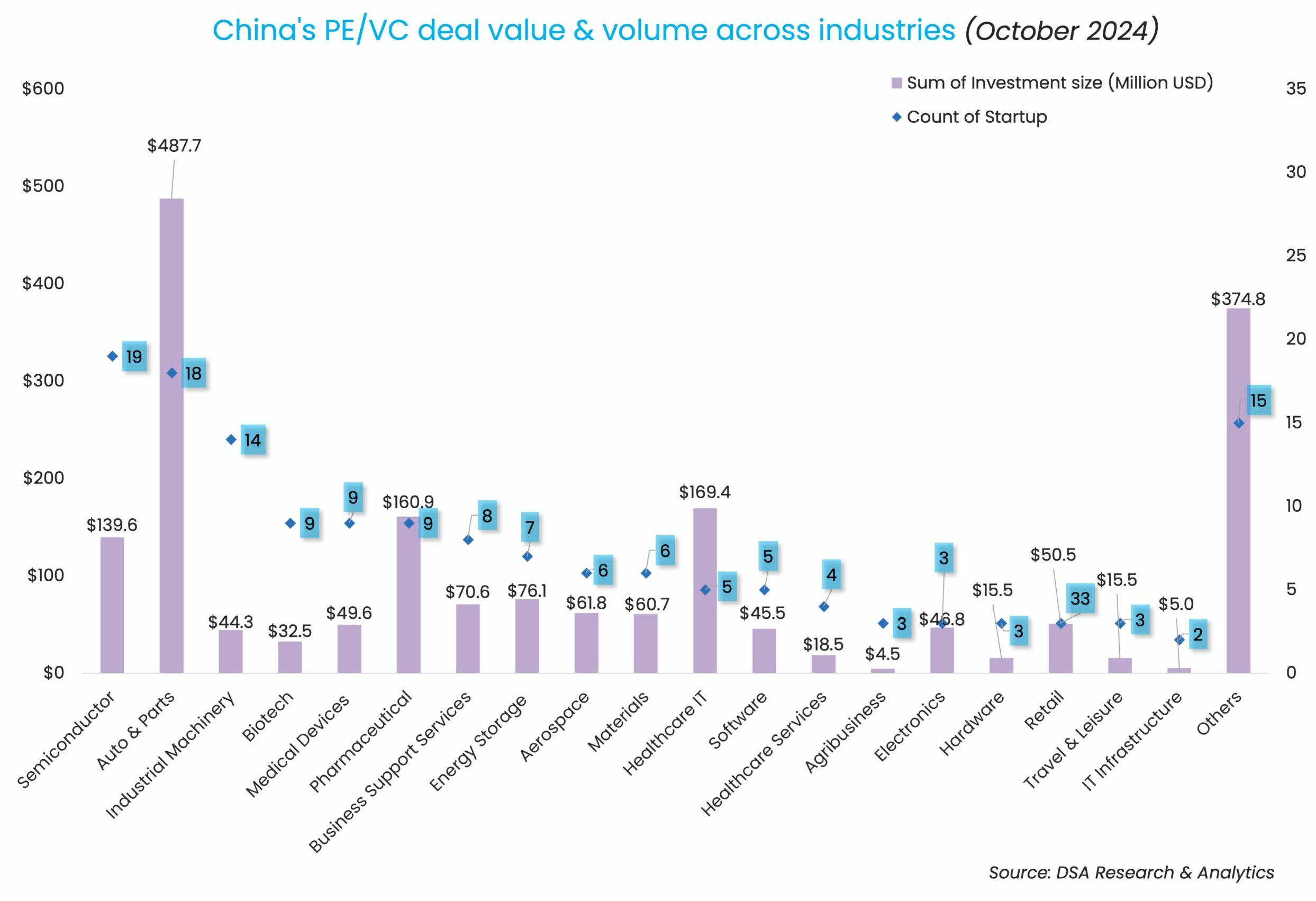 These deals helped push automobile & parts to become the most-invested sector, raking in $487.7 million through the completion of 18 deals. The semiconductor space stayed on top with 19 deals, despite raising only $139.6 million in total.