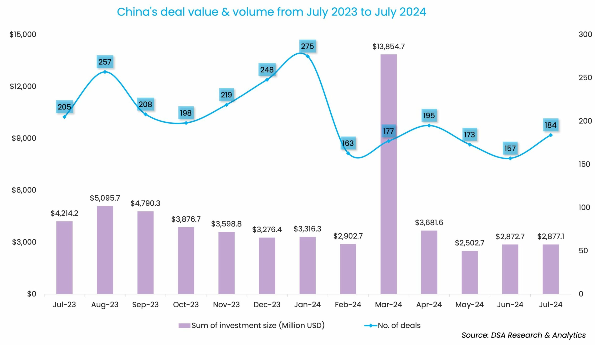 Investors ramped up transactions in July as the Greater China market closed 184 deals, up 17.2% from June. The deal count, which hit a three-month high, shows signs of revival after the 9.2% month-over-month decline in deal volume in June.