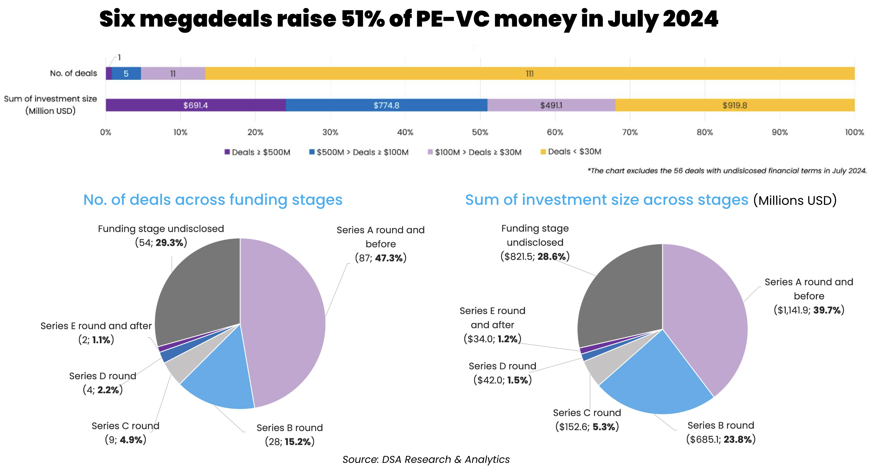 At 87 deals, early-stage investments continued to dominate the country’s venture scene, accounting for 47.3% of the total deal count while collectively raising $1.1 billion, or 39.7% of the total startup funding.