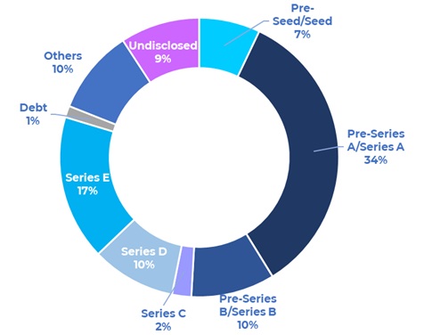 Funding in startups at the pre-Series A and Series A stages nearly tripled to $306.8 million in April from $104.8 million in March. Marking the largest Series A round, food automation startup Chef Robotics secured $43 million in funding led by Avataar Ventures. Other notable Series A deals in the month were Infinity Fincorp ($40 million), Easebuzz ($30 million), Composio ($24 million), Kult ($20 million), Intellicar ($13.5 million), and HexaHealth ($12 million).