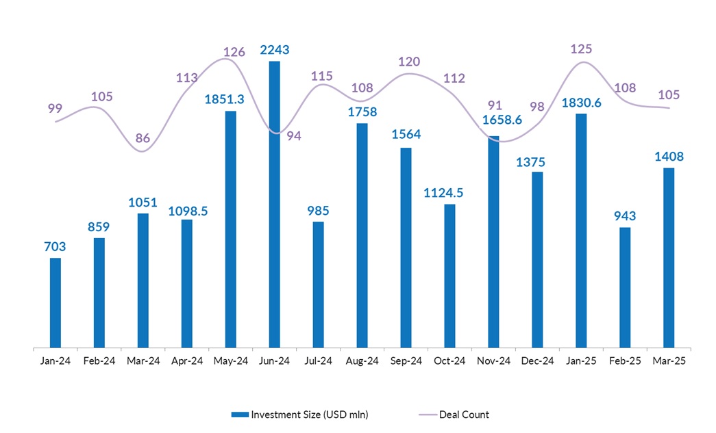 On a year-on-year basis, too, fundraising saw a 34% increase from $1.051 billion in March 2024.