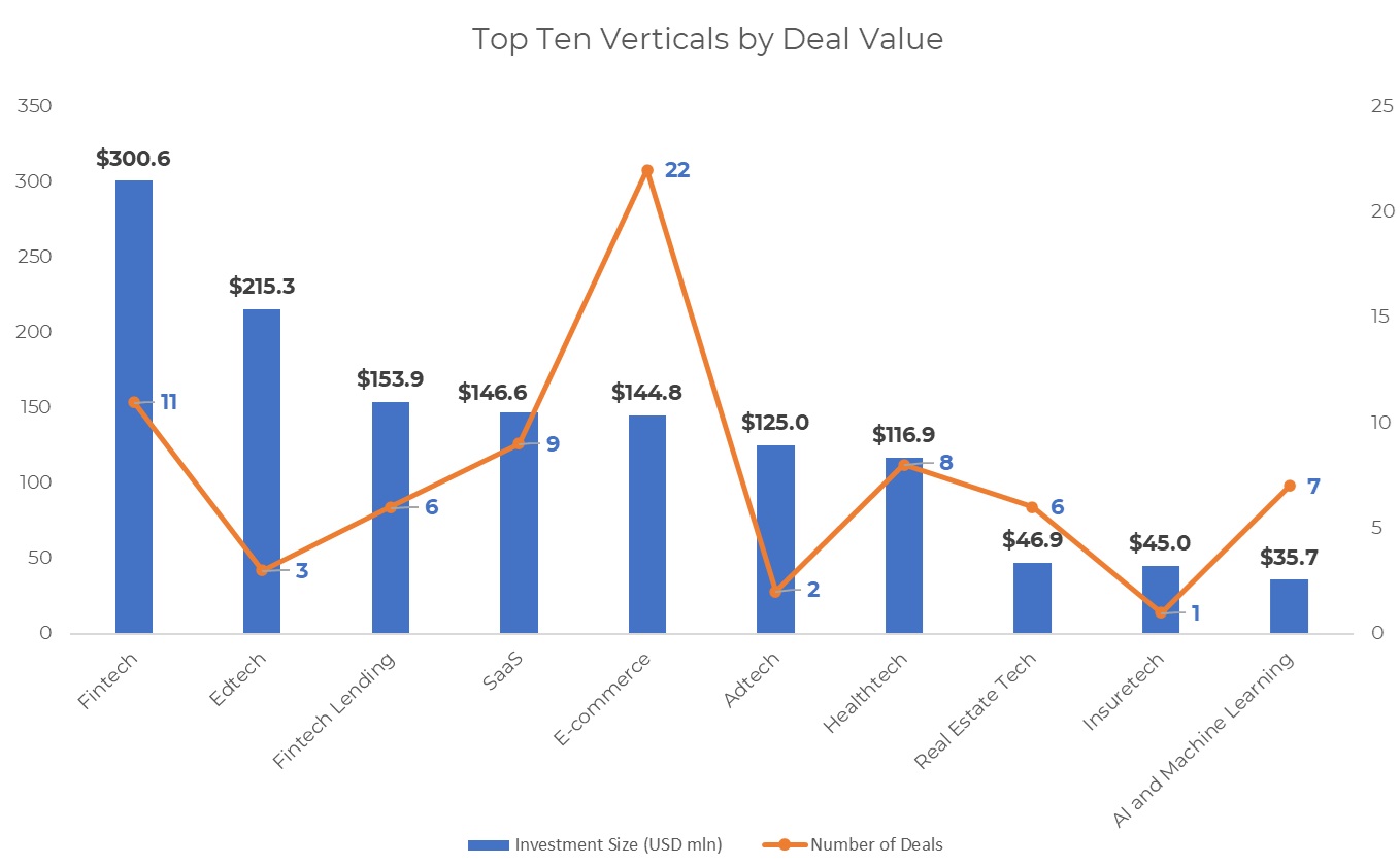 Buoyed by the PhysicsWallah deal, the education and training industry was pushed to the second spot with a total of $215.3 million in funding from three deals. The other two deals within the industry were Invest4Edu ($3 million) and Vedantu ($2.3 million).