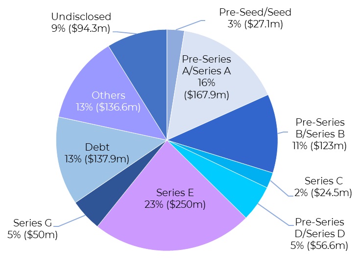 Navi Finserv led the pack with $38 million in funding from multinational financial services firm JP Morgan in a securitisation deal. Moneyboxx Finance followed with a $32-million funding through the issuance of equities to support its growth plans. Other notable deals within financial services include Dezerv ($32 million), BlackSoil NBFC ($24.8 million), Vayana Network ($20.5 million), Satin Creditcare ($16.2 million), and Stable Money ($15 million).