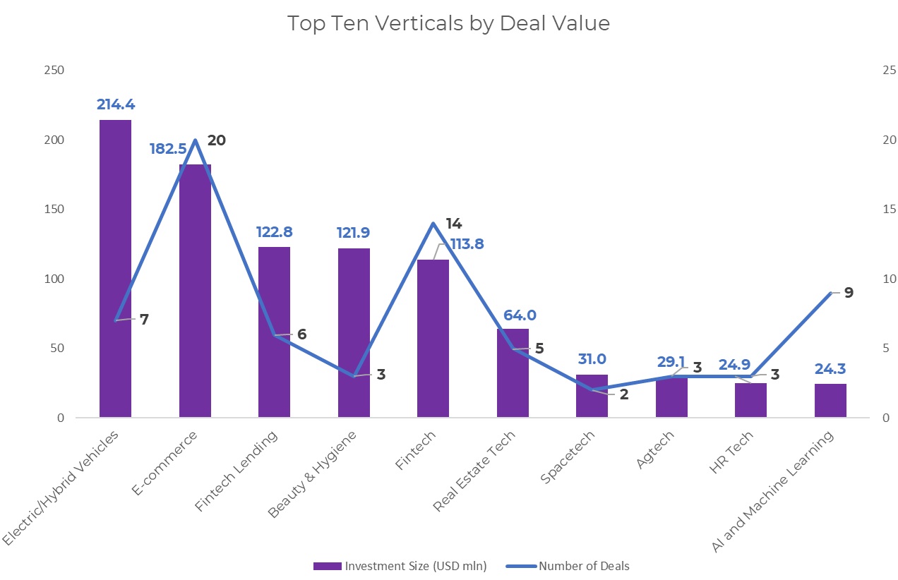 Led by Rapido, transportation services were pushed to the third spot with total funding proceeds worth $160.6 million from six deals. The other prominent deal within the industry was BluSmart, which raised $24 million in a funding round led by its existing investors Zurich-based climate finance firm ResponsAbility Investments, cricketer MS Dhoni’s Family Office, and ReNew founder Sumant Sinha.