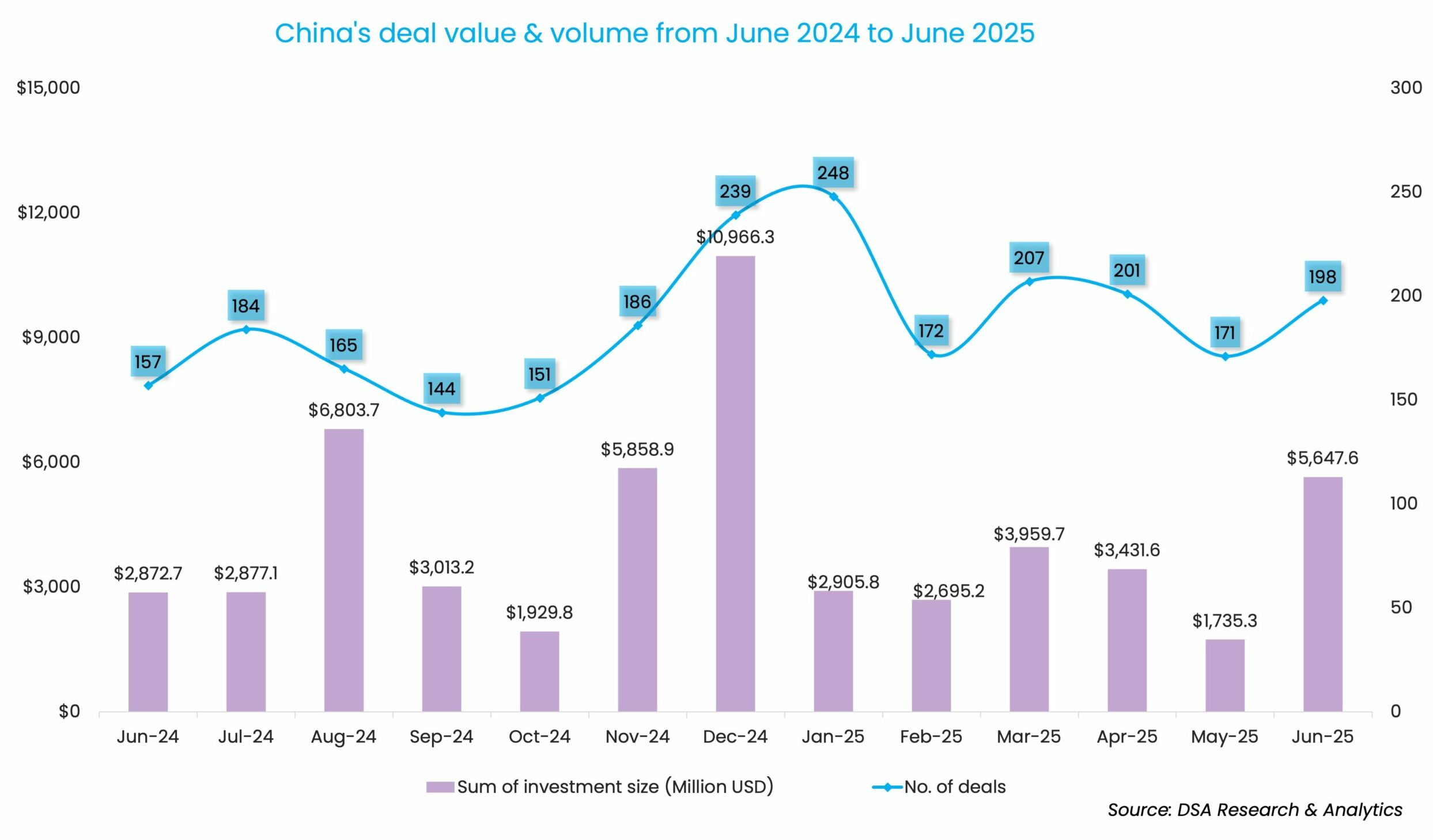 At $5.6 billion, the monthly deal value was up 225.5% from $1.7 billion in May. The aggregate 198 transactions recorded in June was up 15.8% month-over-month (MoM), according to proprietary data compiled by DealStreetAsia.