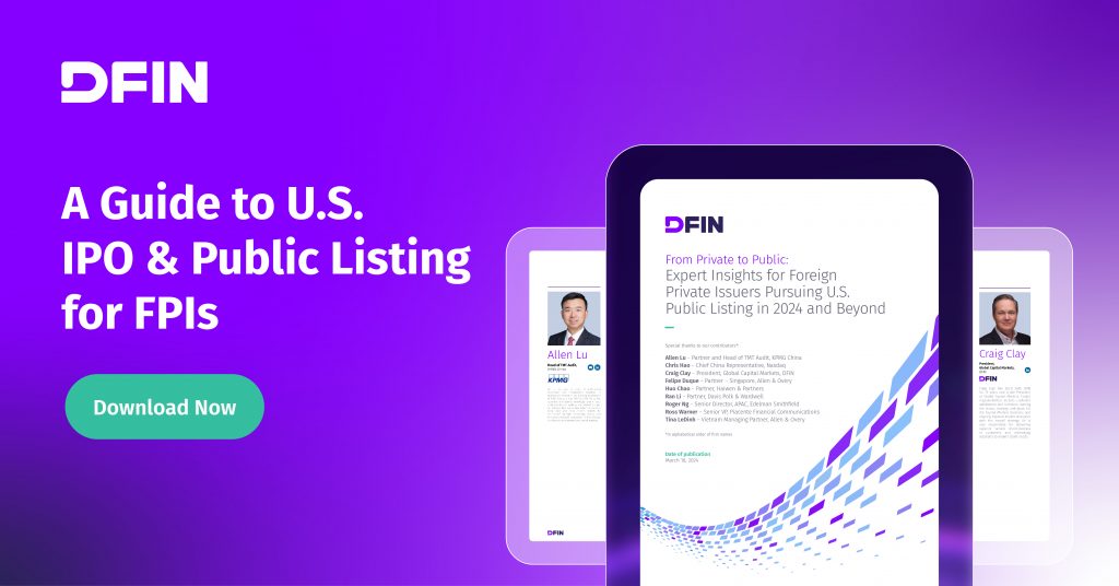 In this report, our expert panel provides firsthand tips and guidance for companies and their management teams as they plan for their U.S. IPO and public listing as FPIs. We analyze several key aspects of a successful listing, including financial statements, filing processes, regulations and compliance, as well as investor relations and ESG.